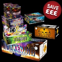 1 x Retribution (72 shots), 1 x Vengeance (55 shots), 1 x Firebrand (50 shots) and 3 x Packs of Medium Sparklers